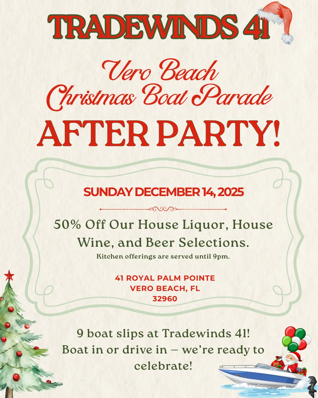 Nestled in the heart of Vero Beach’s prestigious Royal Palm Pointe, Tradewinds is a one-of-a-kind upscale dining destination offering an elevated steak and seafood experience with a vibrant 1950s Tiki bar flair. Helmed by local entrepreneur Timothy Girard, Tradewinds blends fine dining with laid-back coastal charm, featuring fresh farm-to-table ingredients and signature dishes grilled over an authentic Argentinean wood-fired Asadore grill. With sweeping views of the Intracoastal Waterway, 10 boat slips, a private event space, and even a custom golf cart shuttle for neighborhood patrons, Tradewinds promises more than a meal—it’s a lifestyle. Whether you’re arriving by boat or foot, expect unforgettable flavors, stellar service, and a social scene unlike any other in Vero. Come for the food and return for the experience.